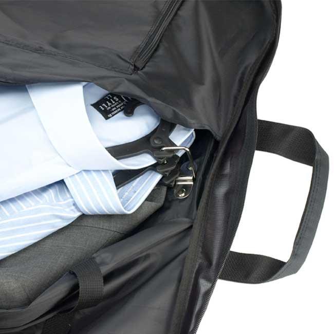 INFORMATION◆サイズ : 横幅63×高さ49×厚み10センチ◆素 材 : ポリエスター◆カラー : (01)クロ◆本体正面 : 2分割ファスナーポケット◆本体内部 : 衣類止めベルト、ファスナーポケット、ネクタイ掛け◆その他の仕様 : ハンガー3本付き◆重 量 : 約840g◆生産国 : 中国
