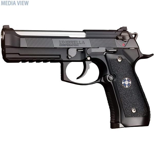 東京マルイ バイオハザード アルバート.W.モデル 01P 18歳以上ガスブローバック 汎用性を高めた、アンブレラ社の『制式採用ハンドガン』。汎用性が高い標準形状のスライドを採用し、フロント部にセレーションを追加。左側面には《UMBRELLA CORPORATION》の刻印が刻まれ、右側面には《ALBERT.W.MODEL 01P》がプリントされている。「耐環境塗装仕上げ」という設定のもと、ブラックで統一したスライドとフレーム。20mm幅のアンダーレイルが一体化したフレームは、ビーバーテイルとスクエアタイプ・トリガーガード、そしてグリップ前後のチェッカリングを備えた特別仕様。メッキ処理でステンレスシルバーに仕上げられたバレル。全体をブラック一色のカラーリングで統一したハイブリット・カスタム・グリップ。グリップには、アンブレラ社の青い傘のメダリオンを装備。ガスブローバック「U.S. M9ピストル」のエンジンを搭載。発射と同時にスライドが後退し、強力な反動が楽しめる。【警告】対象年齢18歳以上