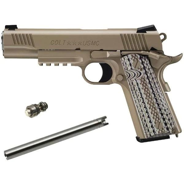 東京マルイ M45A1 CQBピストル IMPULSE[インパルス] エアガン 18歳以上用 ガスガン ガスハンドガン ガスブローバック「M45A1 CQBピストル」では、特徴的な外観や質感の再現性にこだわりながら、内部メカのアップグレードも実施。従来のガスブローバック・ガバメントモデルに比べ、リコイルショックの強化や作動の安定性向上を実現しました。そんな人気のM45A1 CQBピストルをベースに、当店自慢のIMPULSE[インパルス]カスタムを施した即納完成品です。IMPULSE[インパルス]とはハンドガンのベーシックカスタムとして、インナーバレルとメインバルブをカスタムアップ。ブローバックガスガンの定石として、ベストマッチングなパーツを厳選してあります。「インナーバレルとメインバルブを交換する」、一見簡単そうなカスタム。しかし、工場などで大量に生産されている商品は厳密に言うと「全て一緒」ではありません。その、ほんの少しの違いまでもを確認し、修正(カスタム)を加え、その銃の「本当の精度」を引き出すためのカスタム、それが「インパルス」なのです。