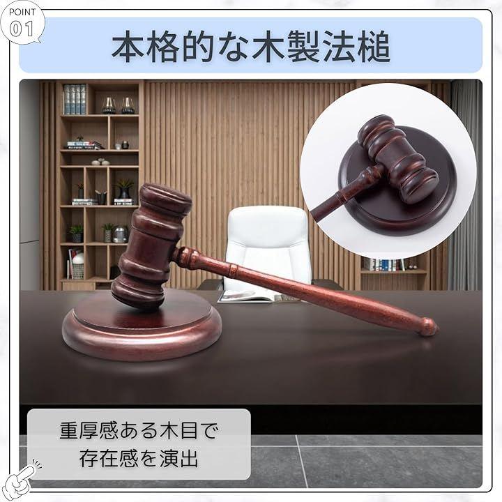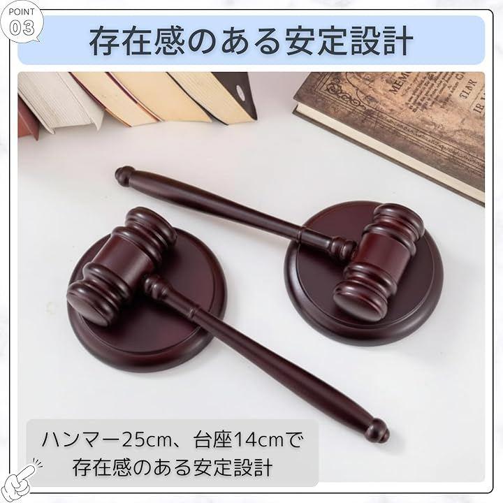 「本格的な木製法槌セット」裁判官の演出にぴったりな実木製の法槌と専用台座のセット。