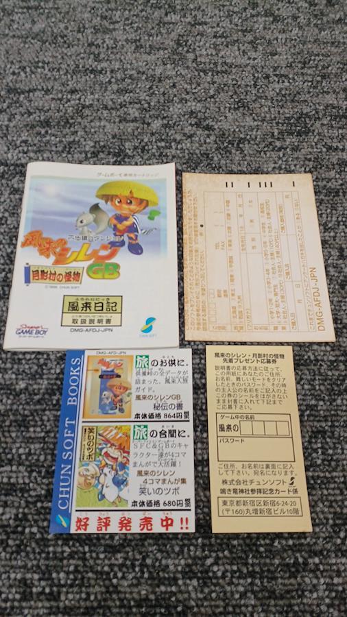 GBソフト 風来のシレンGB 月影村の怪物 CHUN SOFT ゲームボーイソフト CHUN SOFT風来のシレンGB 月影村の怪物GBソフト