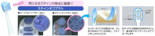 プリニア・プリニアスリム・プリニアスマート専用替えブラシ、着色用ステインブラシ!NEW!!ステインオフブラシでキレイな歯 歯に沈着したステインが気になる方にプリニアの替えブラシシリーズからステインオフブラシが登場! 気になるステインの除去に最適ブラシのセンターの3つの密集毛には、ひし形状のブラシを採用、ステインをしっかりととらえる。両サイドには極細毛を採用することで、歯肉縁下のプラークにもアプローチします※プリニアスリムおよびプリニアスマートはブラシの接合部分が同じ構造ですので、 替えブラシの互換性があります。