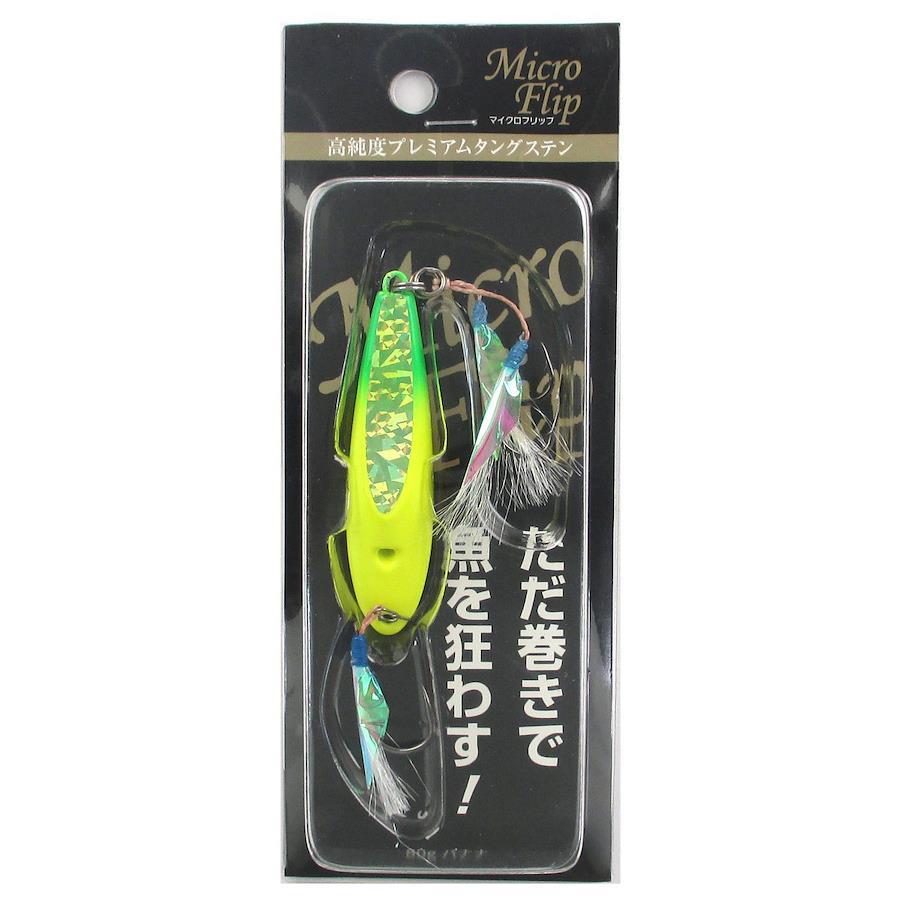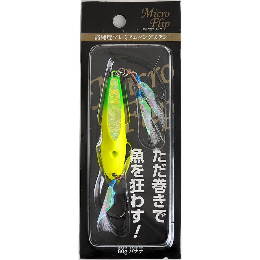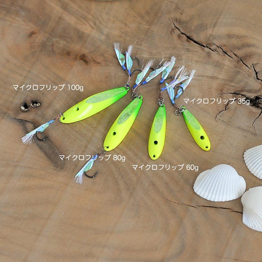 ライトゲームを変えるマイクロジギングに専用開発。 ただ巻きで釣れるプレミアムタングステンジグ。 ※深場・急流用80g、100gを追加しました。 ※意匠登録済みマイクロフリップの特徴 注目のマイクロジギングに専用開発。 基本はキャスト&リトリーブ。誰でも始められます。 高比重のプレミアムタングステンを採用。 エギングロッドやシーバスロッドの流用もOK。 遠投でき、ただ巻きでもよく泳ぐ独特のシェイプ。特に日本海など深場のマダイジギングファンからご要望の多かった80g版、100g版をリリースしました。高密度タングステン採用で、鉛版と比較して驚くほどシルエットが小さく、深場・急流の海でもマイクロジギングの本領を発揮します。マイクロジギングは、多くのフィッシュイーターの主食ともいえるマイクロベイトに焦点をあてた新世代ライトゲームです。 その三大ターゲットは、マダイと、ハタ類などのロックフィッシュ、ブリやカンパチなどの青物。基本的な操作は投げてただ巻きなので、初心者でも気軽に楽しむことができます。 マイクロジギング専用タングステンジグ『マイクロフリップ』は、重量が35gで全長がわずか48m