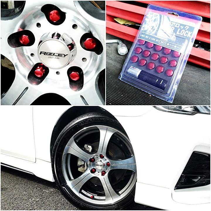 ・スチール製歯車型のロックナット4個と17HEX6角ナットが12個の4穴用で、色は 「赤」 ネジピッチは、1.5です。