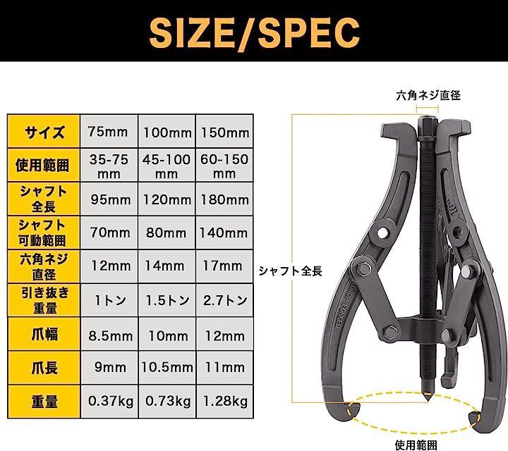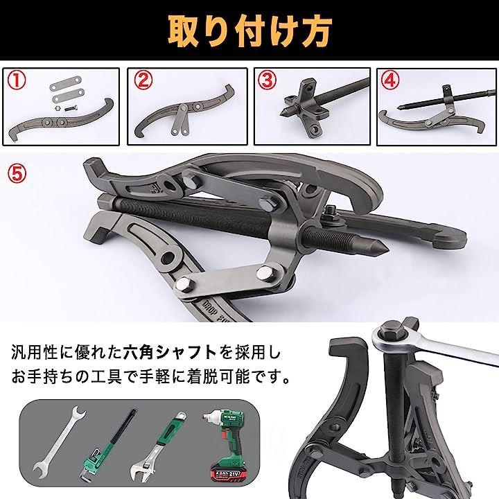 ギアプーラーは、2本爪および5本爪のオプションを備えており、車のギアやプーリーを抜き出すことができます。