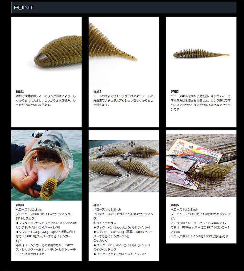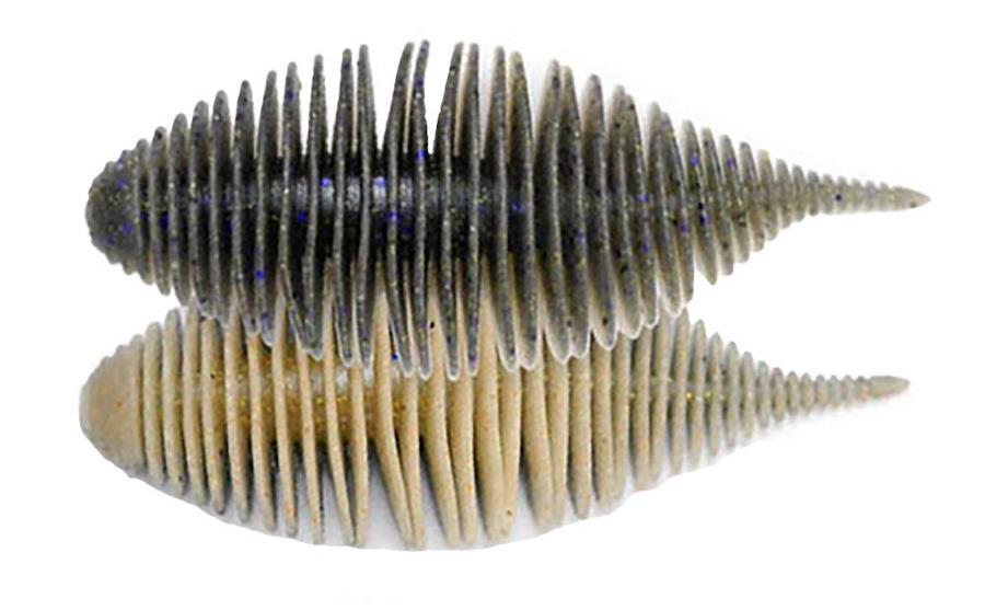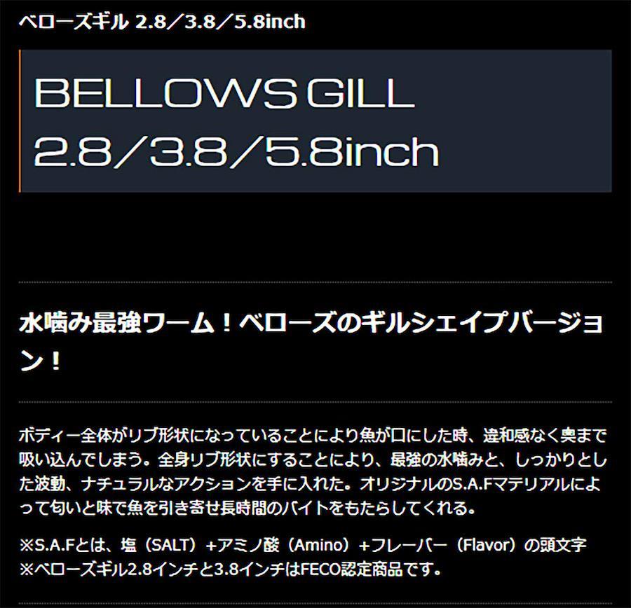 リブ形状のボディーは、魚に違和感なく吸い込ませると同時に、強い水噛みと波動、ナチュラルなアクションを生みだします。オリジナルのS.A.Fマテリアルによって匂いと味で魚を引き寄せ長時間のバイトをもたらしてくれる。
