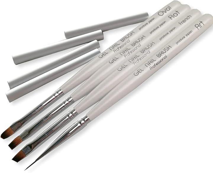 「ジェルネイル用 ブラシ」カラー:ホワイト(4本セット) 筆:オーバル/フレンチ/フラット/アート8mm *キャップ付き