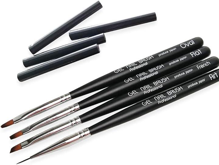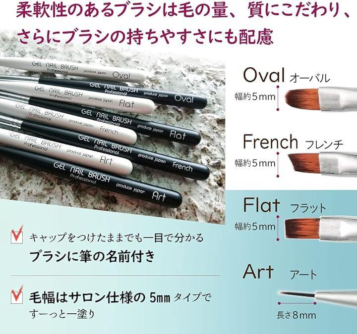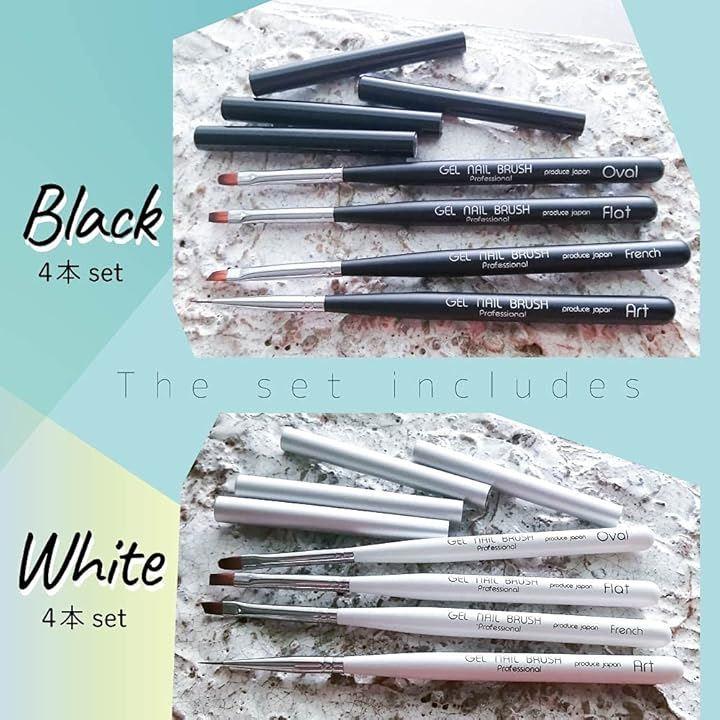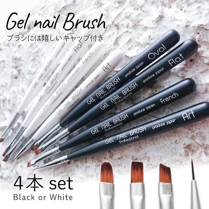 「ジェルネイル用 ブラシ」カラー:ブラック(4本セット)筆:オーバル/フレンチ/フラット/アート8mm *キャップ付き サイズ:約14cm(±0.3cm) *ブラシの種類により持ち手の長さが異なる場合がございます。