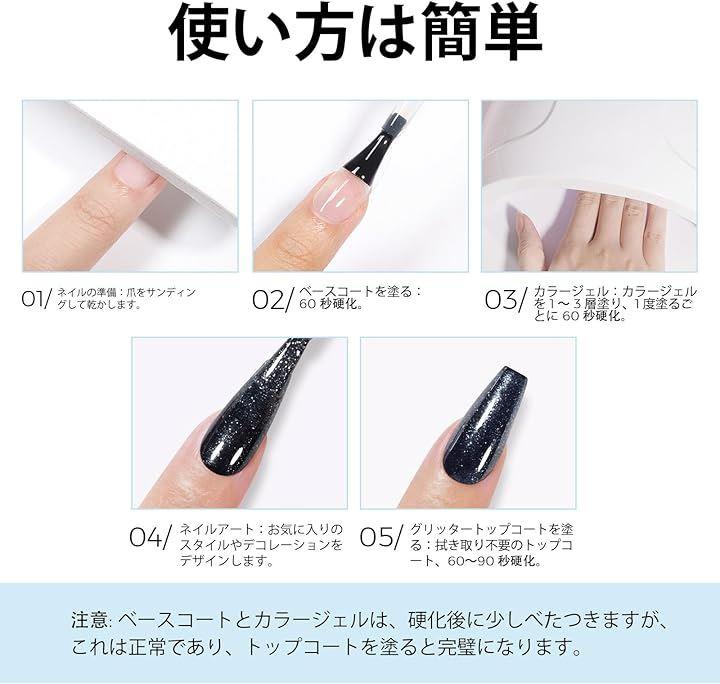 グリッタートップコートを使用すると、あらゆる種類のネイルアートのアイデアを実現し、それぞれの爪を輝かせることができます。