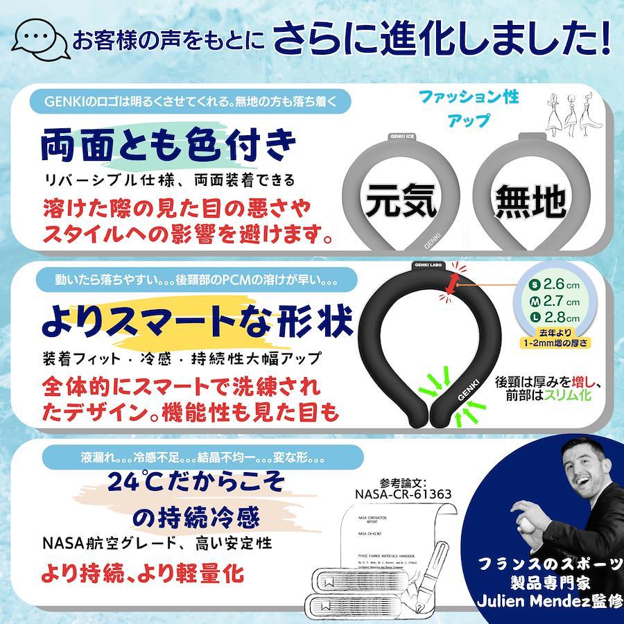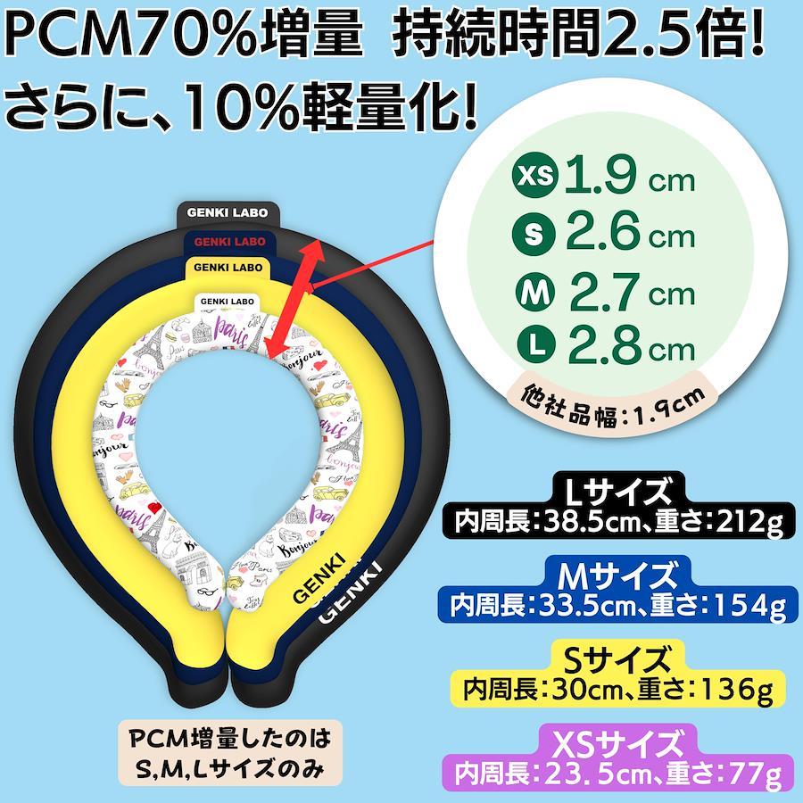 【出荷前検品、液漏れ無償交換】お客様の声を更に反映した最新のクールネックリングを、日仏デザイナー及びISO9001認証工場との協力で進化版を再開発しました。私達はお客様の声を一番多く聞いているから、最高のクールネックリングを一番よく知っています。 【PCM素材&一番優しい24度】PCMとは、NASAが開発した特殊素材で、温度を調節できます。この素材は凝固するのが早く、融解するのが遅い特性があります。アイスネックリングは、クールリング、ネッククーラー、アイスネックリング、クールネックリング、ネックアイスバンドやネッククールリングとも呼ばれ、首周りを冷やすグッズです。大人から子供まで、熱中症対策や暑さ対策に最適な商品です。市場では、28度、24度、18度のPCMが一般的です。日本の6月から8月の露点が18度以上の時間は83%あるのに対し、24度以上の時間は30%しかないです。普通の冷却シートは結露しやすいのは冷却温度が低すぎたためです。18度のアイスネックリングは83%時間帯で結露する可能性があり、持続時間も短いです。28℃のアイスネックリングは冷却効果が弱く猛暑日に向きません。24度のアイスネックリングは僅か30%時間帯で結露する可能性があり、適度な涼しさです。さらに、本品は結露防止加工をしていますので、ほとんど結露しません。24℃の本製品は最高の冷却体験をもたらします。 【高品質の93A TPU & 高級品に使用される包装】私たちは、最高規格の93AのTPU素材と0.5mmの高規格強化硬質PPパッケージを使用しています。これに加えて、高品質のドイツ製PCMを採用しており、商品を高品質で無傷の状態でお届けします。また、私たちの製品はISO9001認証工場との提携をしており、最先端の製造印刷技術を使用しています。これにより、日仏のデザイナーチームのデザイン理念を忠実に反映することができます。 【今年の5つの進化】この夏、暑さ対策にぴったりのクールネックリングが新登場!今年の製品は、5つの進化を遂げました。①PCMを70%増量し冷却効果を2.5倍にアップさせました。(S、M、Lサイズ)②6歳以下のお子様にもフィットするように、新たにXSサイズを開発しました。③タグを小さくし、髪に絡みにくくなりました。④新色登場!おしゃれにこだわりたい方には朗報です。フランスのデザイナーとコラボレーションした5つの新しいデザインをお届けします。⑤クールネックリングにぴったりの保冷バッグも用意しました。フランスの伝統的な配色で、持ち運び便利で、スマートフォンや財布も収納できます。高品質で耐久性のある4mmの保冷材とキャンバスで、クールネックリングの形に合わせて作られていて、保冷性能も抜群です。熱中症対策にぴったりのネッククールリング、クールネックリングを手軽に楽しんでください。 【重さとサイズ】 ①L:222g 、首周りが35cm以上の方 ② M: 171g、首周りが32-34cmの方に推奨 ③S: 146g,首周りが24-32cmの方に推奨 ④XS:73g,首周りが24cm以下の方に推奨