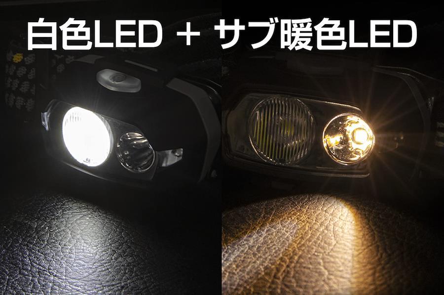 サブ暖色LED暗い場所で手元を照らすなど、メインLEDでは明るすぎる際に便利