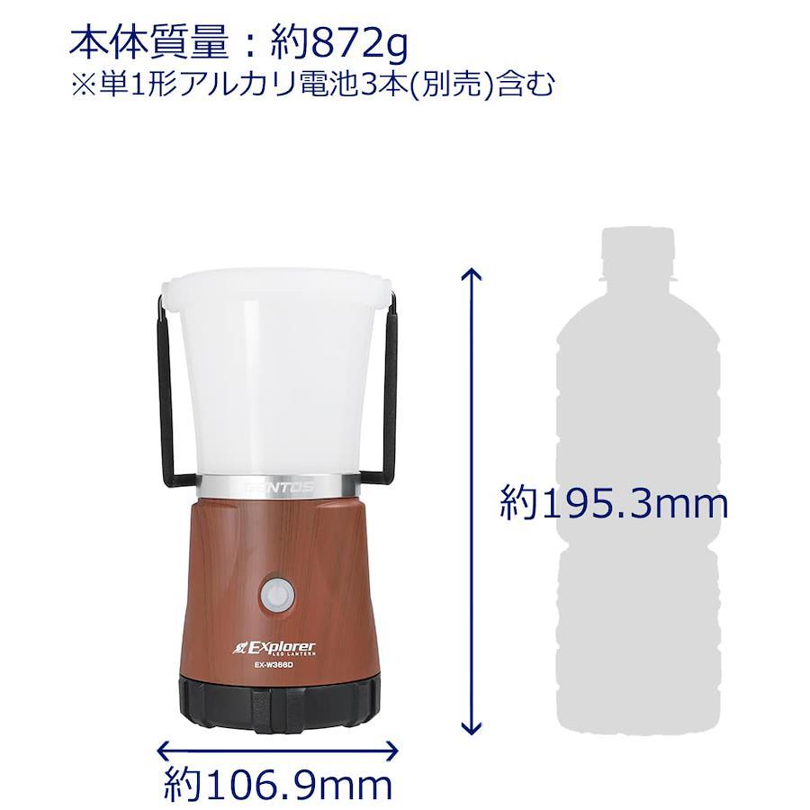 木目調デザイン。光の色と光量を変えられるランタン3色調色機能白色・昼白色・暖色に光の色を変更できる調光機能スイッチ長押しで弱~強まで無段階に調光可能キャンドルモード光量がランダムに変化し、ろうそくの炎のようなゆれを再現する機能インスタントオフスイッチ点灯後、一定時間経過後にスイッチを押すと、どのモードからでも一回の操作で消灯できるビルトインフックカバー部分を外し、逆さまに吊るして使用可能シャドーレストップカバーグローブ全体が発光し、目に優しく影ができない単1電池、専用充電池だけでなく付属のカートリッジスペーサーで単3・単4乾電池も使用可能スムースディマーコントロールサイズ:約直径106.9×195.3mm、本体重量:約872g (電池含む)セット内容・付属品:本体、ハンガーフック、カートリッジスペーサー明るさ:白色/1000ルーメン・昼白色/840ルーメン・暖色/360ルーメン、実用点灯:白色 強/11時間・白色 弱/160時間・昼白色 強/27時間・昼白色 弱/210時間・暖色 強/39時間・暖色 弱/340時間・キャンドル/210時間使用電池:単1形アルカリ乾電池×3本 (別売り) または単3形アルカリ乾電池×6本 (別売り) または単4形アルカリ乾電池×6本 (別売り) または専用充電池 (別売り)機能:1m落下耐久、耐塵・耐水仕様 (IP66準拠)