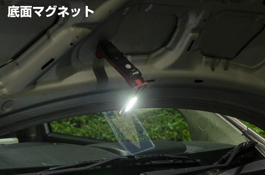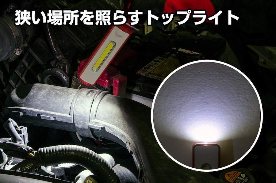 ヘッド部分が折り畳み可能な、USB充電式小型ワークライトトップライト&メインライトで隙間から広範囲まで使える