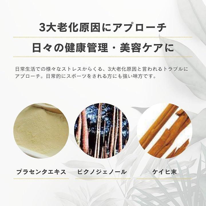 プラセンタやピクノジェノール、α-リポ酸配合で多忙な毎日をサポートするサプリメントです。