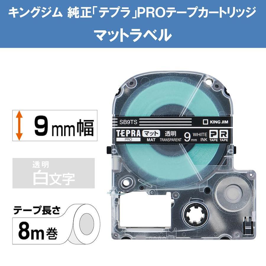 [Genuine] Kingjim Tepra PRO Tape Cartridge Matte Label 9mm Transparent/White Text 8m SB9TS