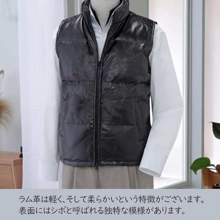 <素材>表地が羊革、裏地がポリエステル100%、中綿がダウン80%、フェザー20%
