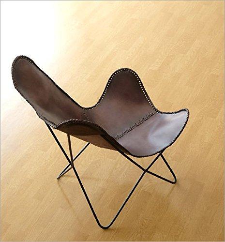 レザーバタフライチェアー全体のサイズ(cm):幅76×奥行78×高さ94 / 座面までの高さ / 前方:40 / 後方(一番くぼんでいる所):38材質:本革(山羊)アイアン / 重量:約8kg / 生産国:インド後方に向かって緩やかに下がったデザインです / 手作り感のある本革製品の特性上、小傷、色ムラ、ツヤ、革特有の匂い等のある商品です。予めご理解のうえご検討ください / 多少のガタつきがある場合がございます / サイズには多少の個体差がございます。複数ご購入を検討されている方は予めご了承ください備考:サイズ・重量はおおよその値です / ディスプレイの色の違いはご了承下さい