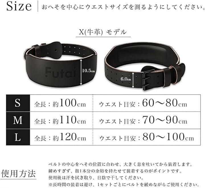 「取扱上の注意」*本製品は筋力トレーニング時の腰部サポートを目的としています。