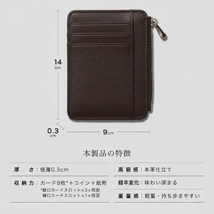 超ミニ財布で、キャッシュレス決済やクレジットカードを主に使用するが、 少量の現金も持ちたい方に適しています。