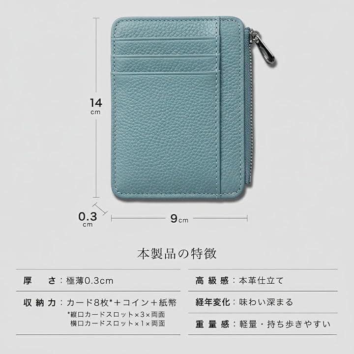 超ミニ財布で、キャッシュレス決済やクレジットカードを主に使用するが、 少量の現金も持ちたい方に適しています。