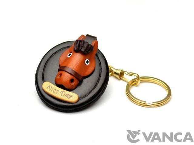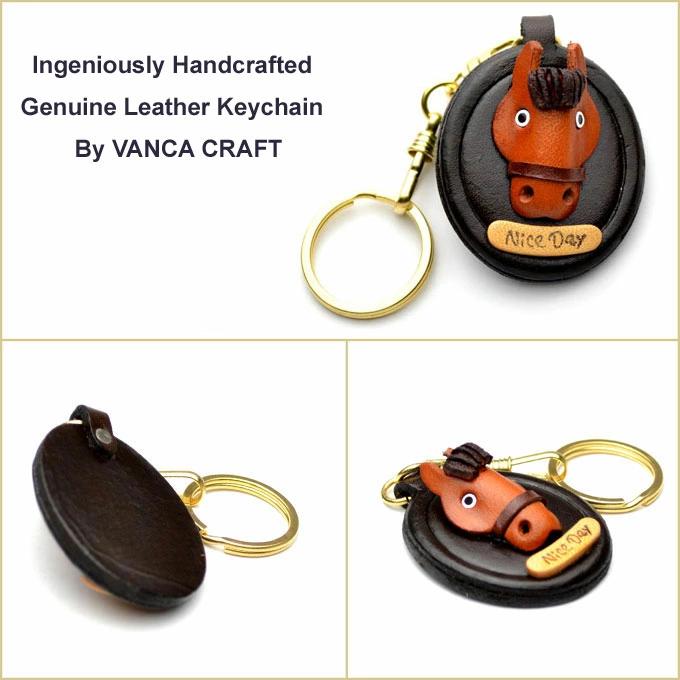 Genuine leather keychain, oval plate, horse, Vanca Craft, Leather Story, VANCA CRAFT, leather, handmade, miscellaneous goods, leather goods, horse riding, horse racing enthusiast, horse lover, horse, cute