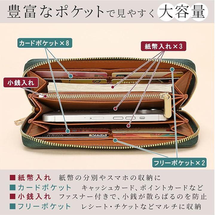 「機能性に優れた収納設計」 - カードスロット x 8 - 紙幣入れ x 2 - フリーポケット x 2 - ファスナー付き小銭入れ x 1 実用性を重視した設計で、必要なものをすっきり収納できます。