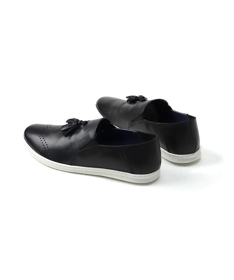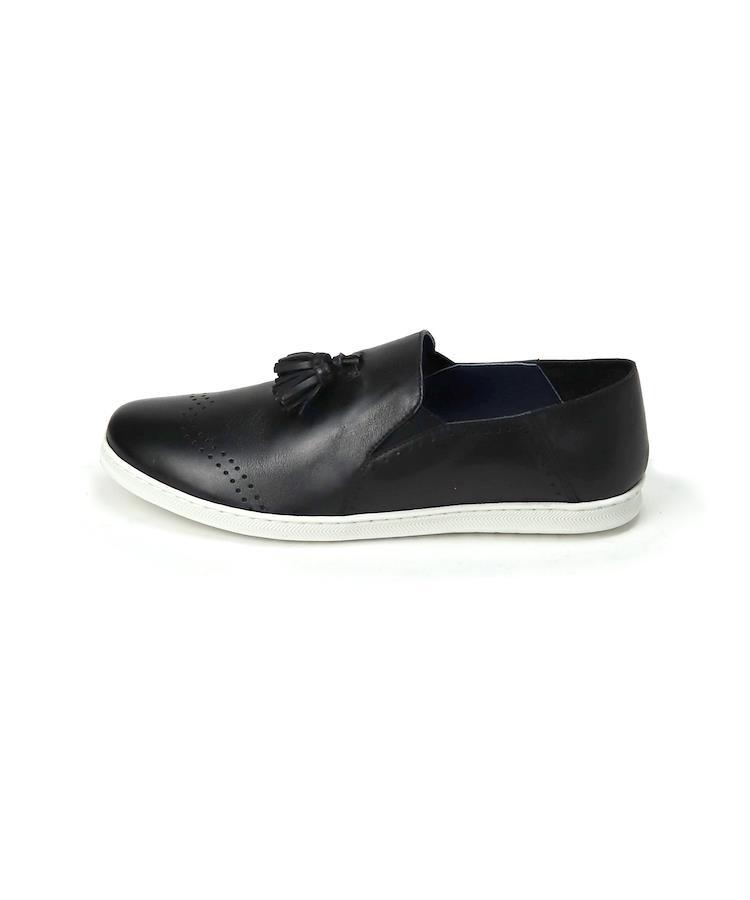 | タッセルデザイン・レザースリッポン 【素材】 履き始めから使い慣れたようなソフトな仕上がりの牛革を使用。 ※本革を使用している為、多少のムラや小傷、個体差などがございます。 【デザイン】 スリッポンスニーカーをベースに、クラシカルな意匠のタッセルと穴飾りをデザインアクセントにした一足。 カカトを踏んでも履けるバンプ仕様になっているので、脱ぎ履きしやすく気軽に履けます。 ジャケパンにも馴染む上品なカジュアル感。 クロップド丈やハーフパンツと合わせて季節感のあるコーディネートにもおススメです。 【サイズ】 普段通常の革靴で25.5cm、スニーカーで26.5-27cmを着用するスタッフで<41/25.5cm>でジャストサイズでした。 ■ブランド...whoop'-de-doo' destruction ■カラー...BLACK,NAVY,WHITE ■アッパー素材...牛革 ■底材.....ラバー ■ヒール...約2cm ■ソール...約1.5cm ■重さ(片足)...約320g ■中国製 *上記は全て25.5cmで計測した数値です。 *多少の誤差が生じる場合がございますので予めご了承下さい。 whoop de doo co.,ltd whoop'-de-doo' フープディドゥ |