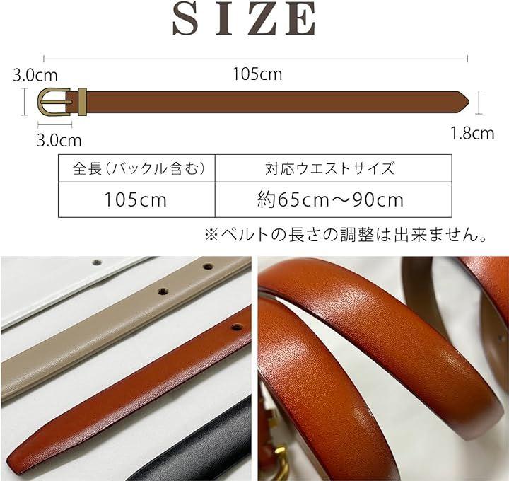 「サイズ」 全長:約105cm/ベルト幅:1.8cm(18mm)/バックル最大幅:約3.0cm ウエスト目安:約65cm~90cmまで *ベルトの長さは調整できません。