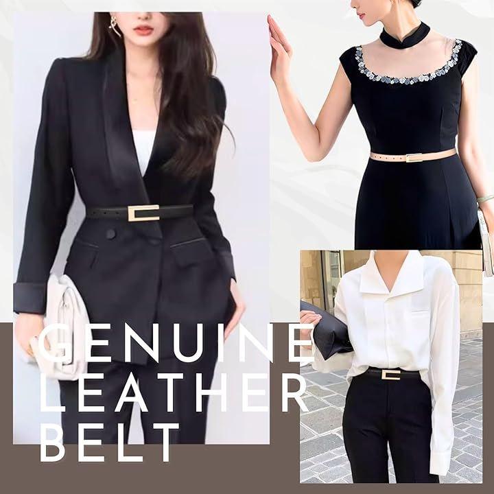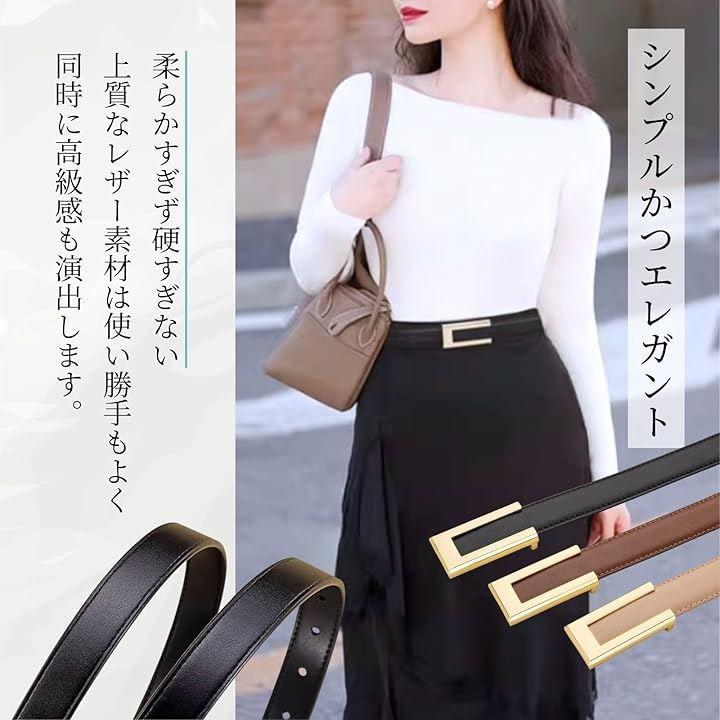 ワンピースやスカートスタイルにもぴったりの、スッキリ見せが叶う本革レディースベルト。