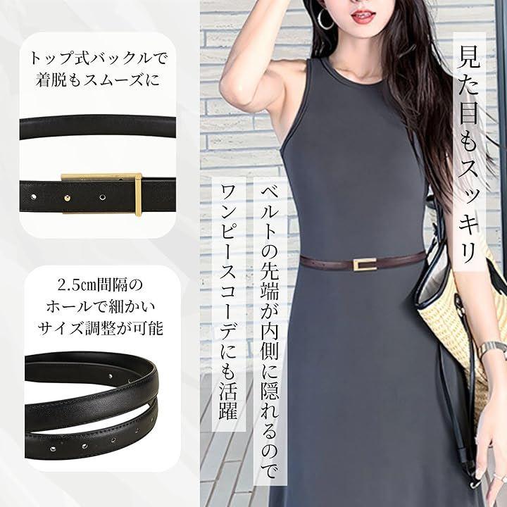 本革仕様のレディース細ベルトは、使いやすさと上品さを兼ね備えた一本。