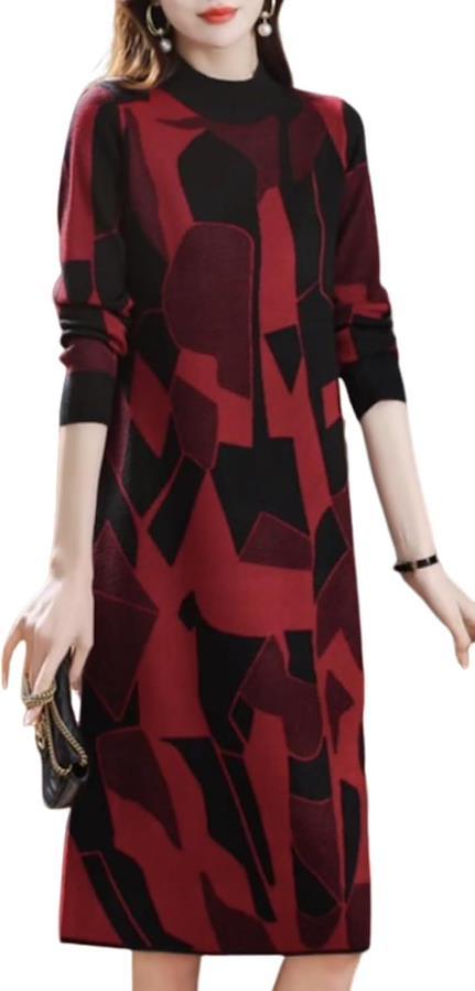 モダンな総柄で1枚で、上品に仕上がるニットワンピースが登場しました。