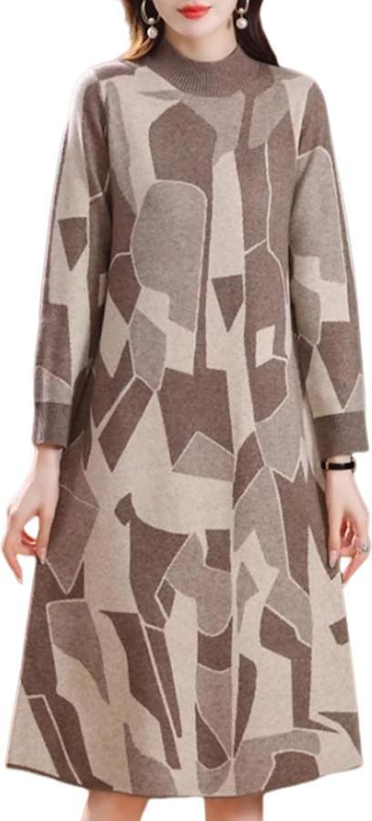 モダンな総柄で1枚で、上品に仕上がるニットワンピースが登場しました。