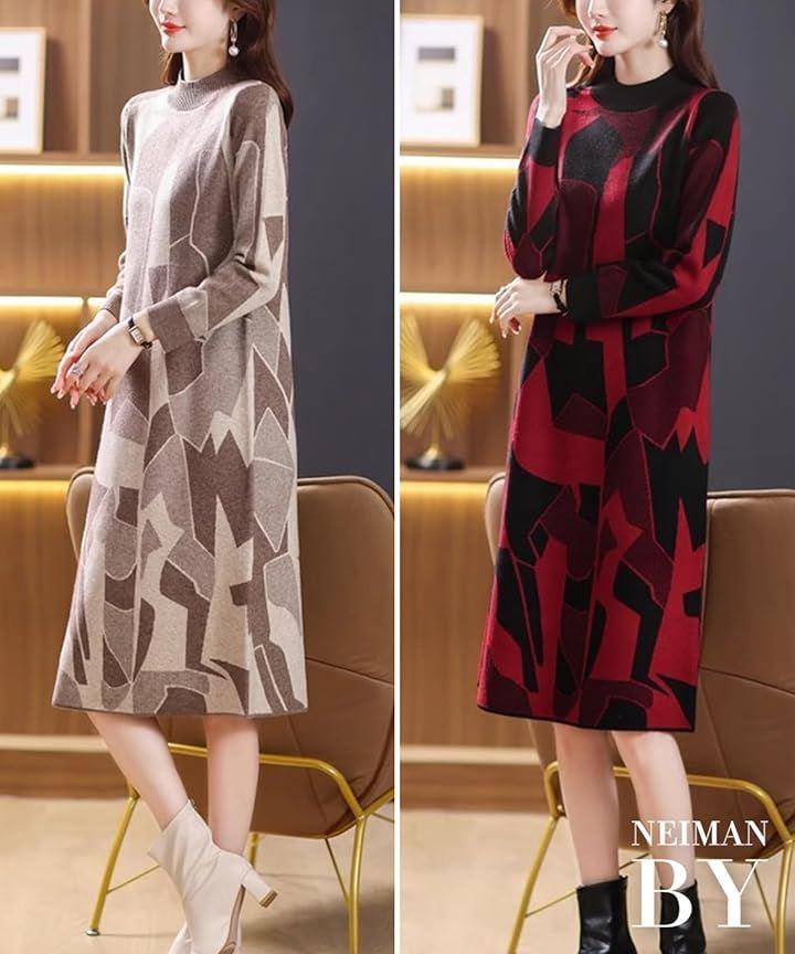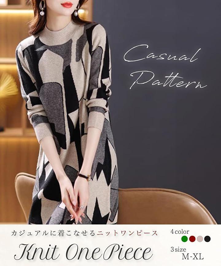 モダンな総柄で1枚で、上品に仕上がるニットワンピースが登場しました。