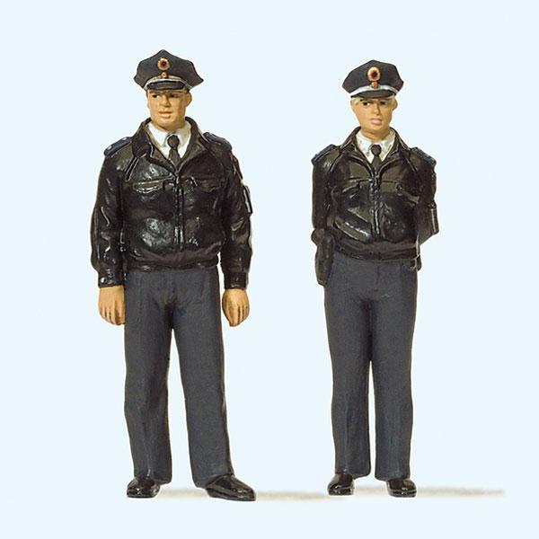 Standing police officers.Blue uniform.FRG男女各1体のドイツ連邦共和国の警察官の人形です。紺色を基調とした制服を着ています。※ジャケット自体は黒です。