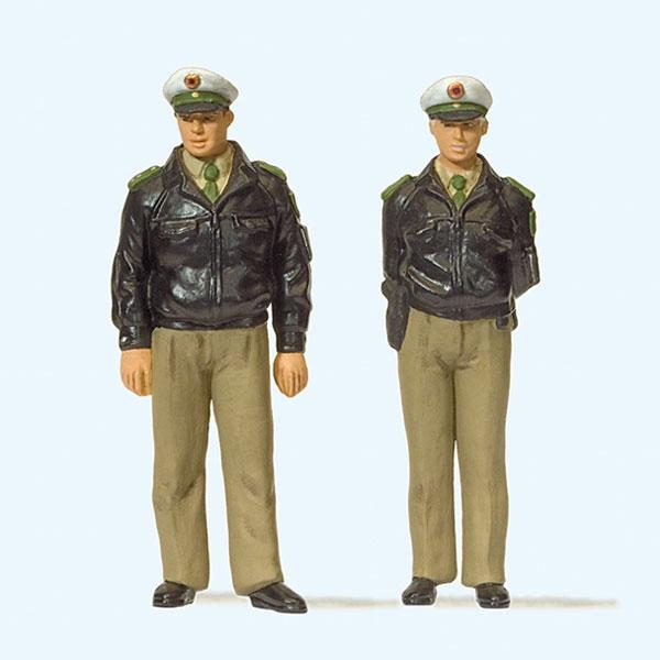 Standing police officers.Green uniform.FRG男女各1体のドイツ連邦共和国の警察官の人形です。緑を基調とした制服を着ています。※ジャケット自体は黒、ズボンはベージュです。