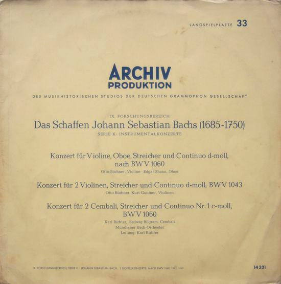 ・アーティストJohann Sebastian Bach ? Karl Richter - M?nchener Bach-Orchester - Otto B?chner - Edgar Shann - Kurt Guntner - Hedwig Bilgram・タイトル3 Doppelkonzerte Nach BWV 1047 1043 1060・レーベル・型番Archiv Produktion 198321・フォーマットLPレコード・コンディション(盤)良い (VG+)・コンディション(ジャケット)良い (VG+)・コンディション(帯)オビなし・特記事項
