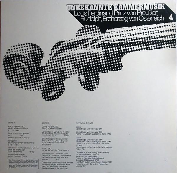 ・アーティストLouis Ferdinand von Preu?en, Erzherzog Rudolf von ?sterreich・タイトルUnbekannte Kammermusik 4・レーベル・型番Bayer 0666512・フォーマットLPレコード・コンディション(盤)非常に良い(EX)・コンディション(ジャケット)良い (VG+)・コンディション(帯)オビなし・特記事項【カバーにシール付着】【カバー汚れ】