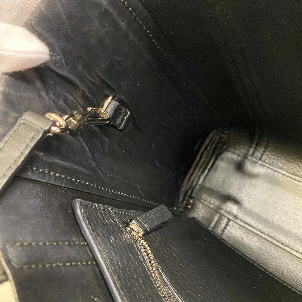 状態 | 外・表面:小キズ、スレ、薄汚れ外・ハンドル-ストラップ:小キズ、スレ、薄汚れ、コバ割れ 外・コーナー:小キズ、スレ、薄汚れ 外・形状:良い 内側:小キズ , スレ , 破れ , 汚れ , シワ , 亀裂 ファスナー部分:小キズ、スレ におい:なし 金具部分:小キズ、スレ 内側レザー部分に亀裂、破れ有り。 |