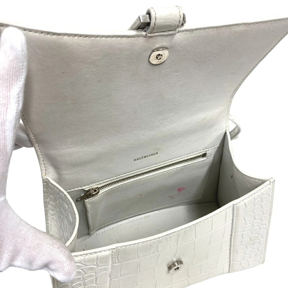 商品名 | BALENCIAGA/バレンシアガ 593546 アワーグラス 2WAYハンドバッグ クロコ型押し ショルダーバッグ ホワイト レディース |