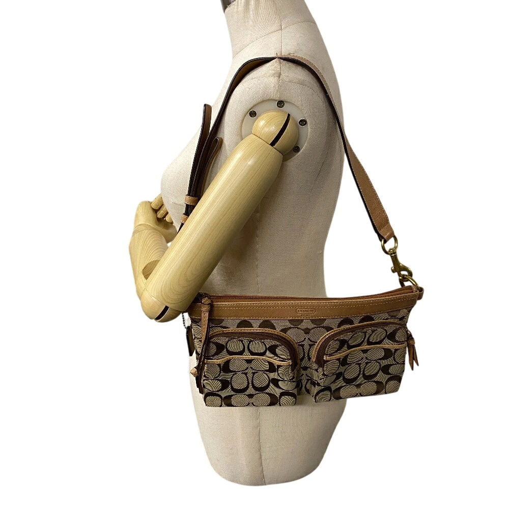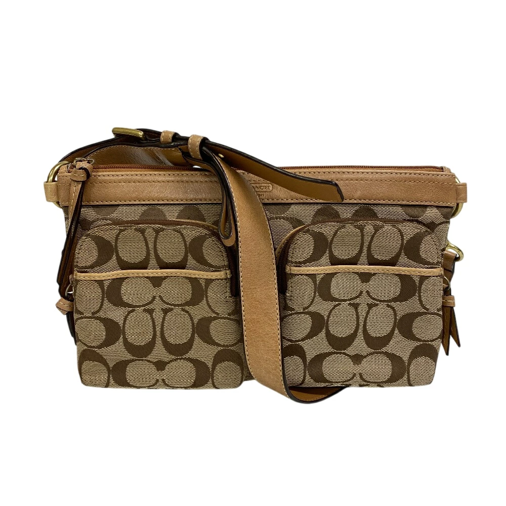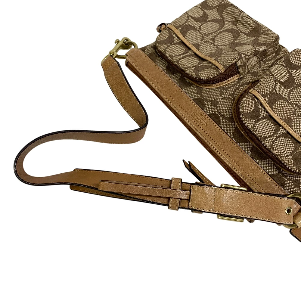 商品名 | COACH/コーチ ベージュ ダブルポケット シグネチャー柄キャンバス ショルダーバッグ ブラウン レディース |