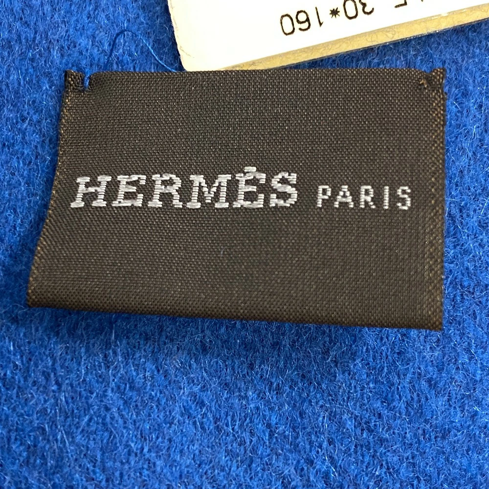 商品名 | HERMES/エルメス エブリン Hロゴ、リバーシブル マフラー ブルー ユニセックス |