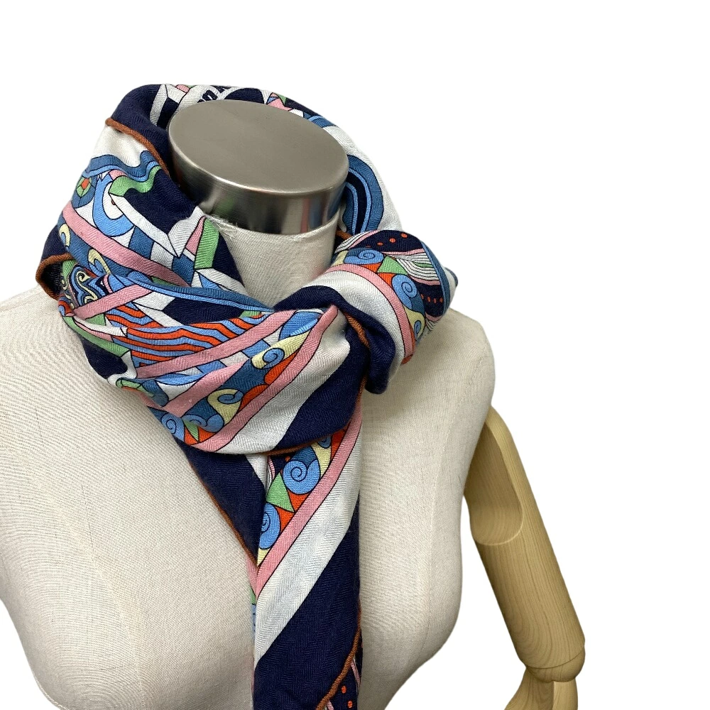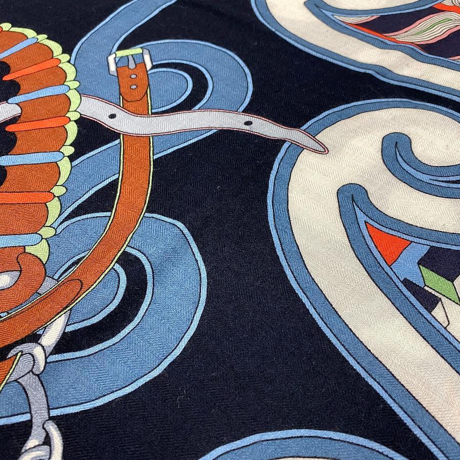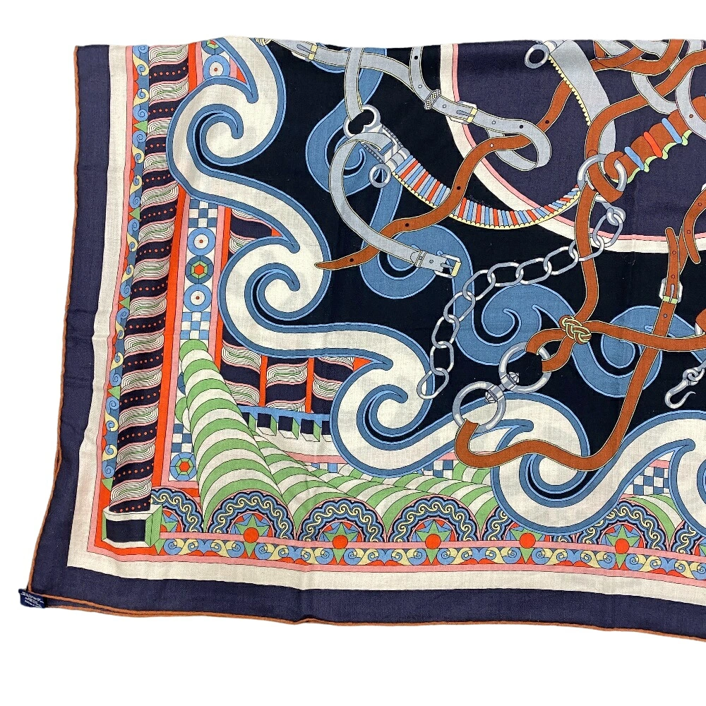 商品名 | HERMES/エルメス カレジェアン Harnais en Rosace ハーネスの薔薇窓 スカーフ ネイビー ユニセックス |