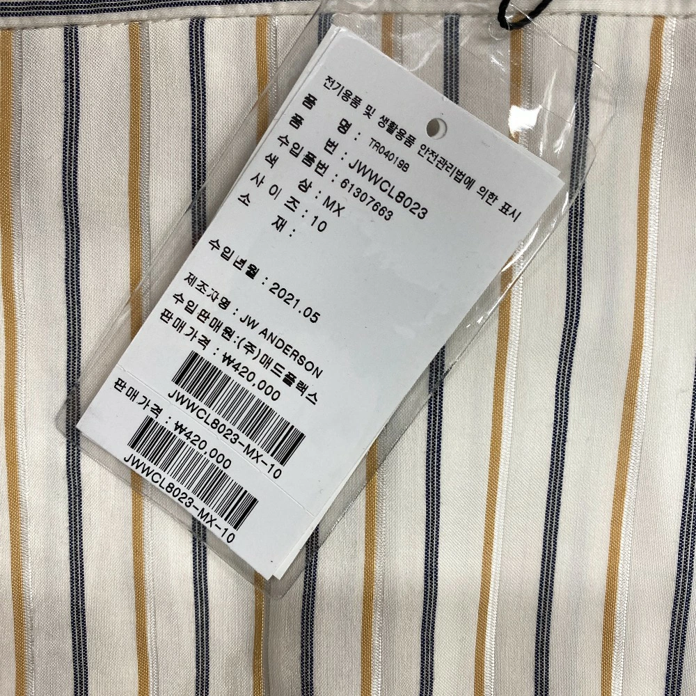 商品名 | J.W.Anderson./ジェイダブリューアンダーソン TR04019B アシンメトリー ワイドパンツ ストライプ パンツ ホワイト レディース |