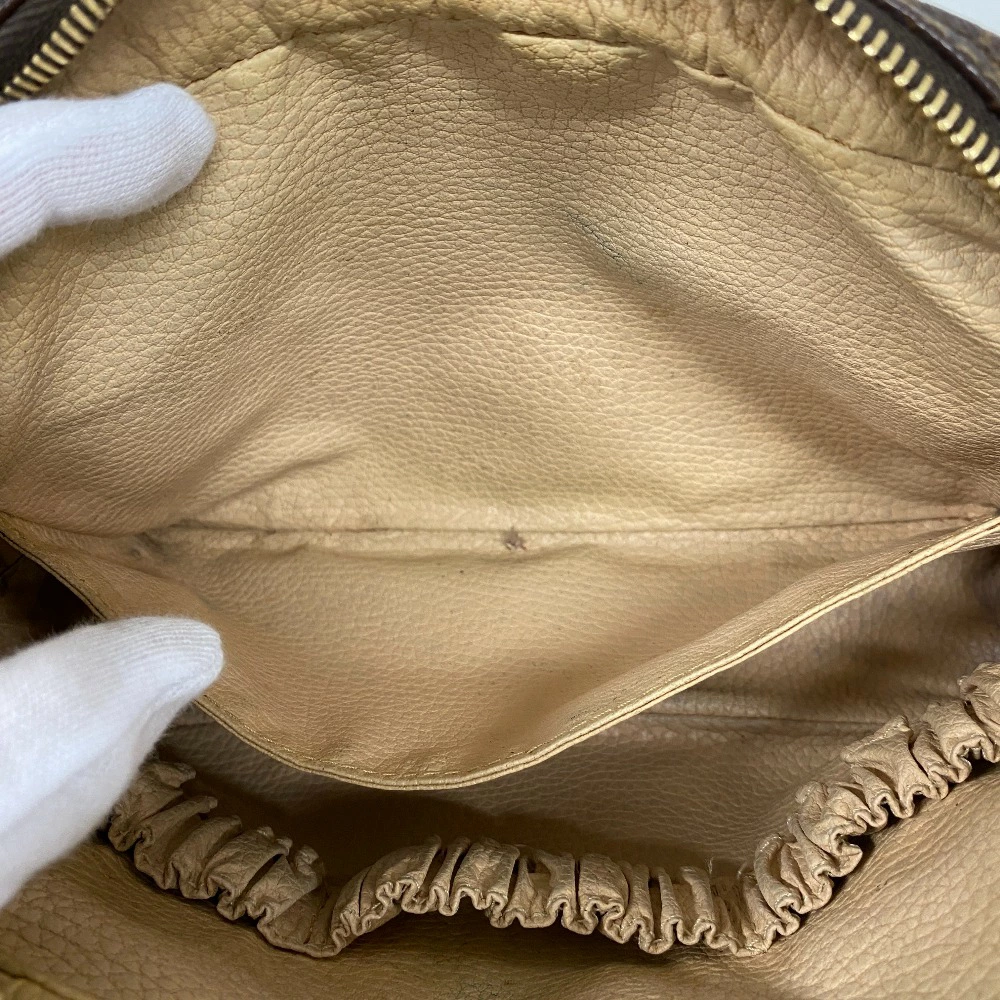 状態 | 外・表面:小キズ、キズ、黒ずみ外・コーナー:スレ、キズ 外・形状:やや型崩れ 内側:スレ , キズ , 破れ , 汚れ , シミ ファスナー部分:スレ、キズ、くすみ におい:古い匂い 金具部分:スレ、キズ、くすみ |