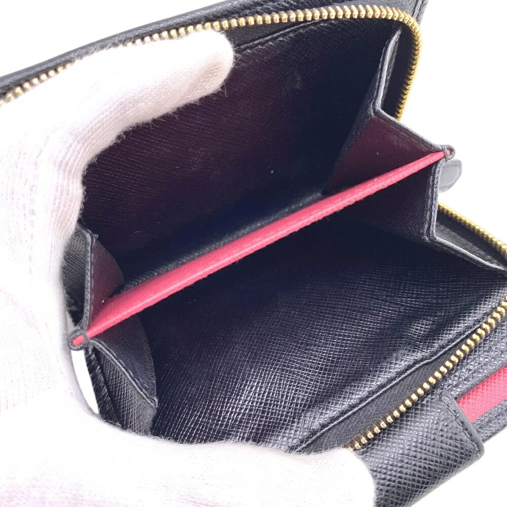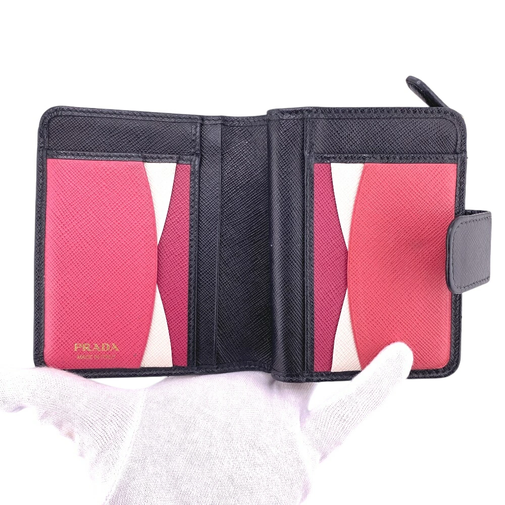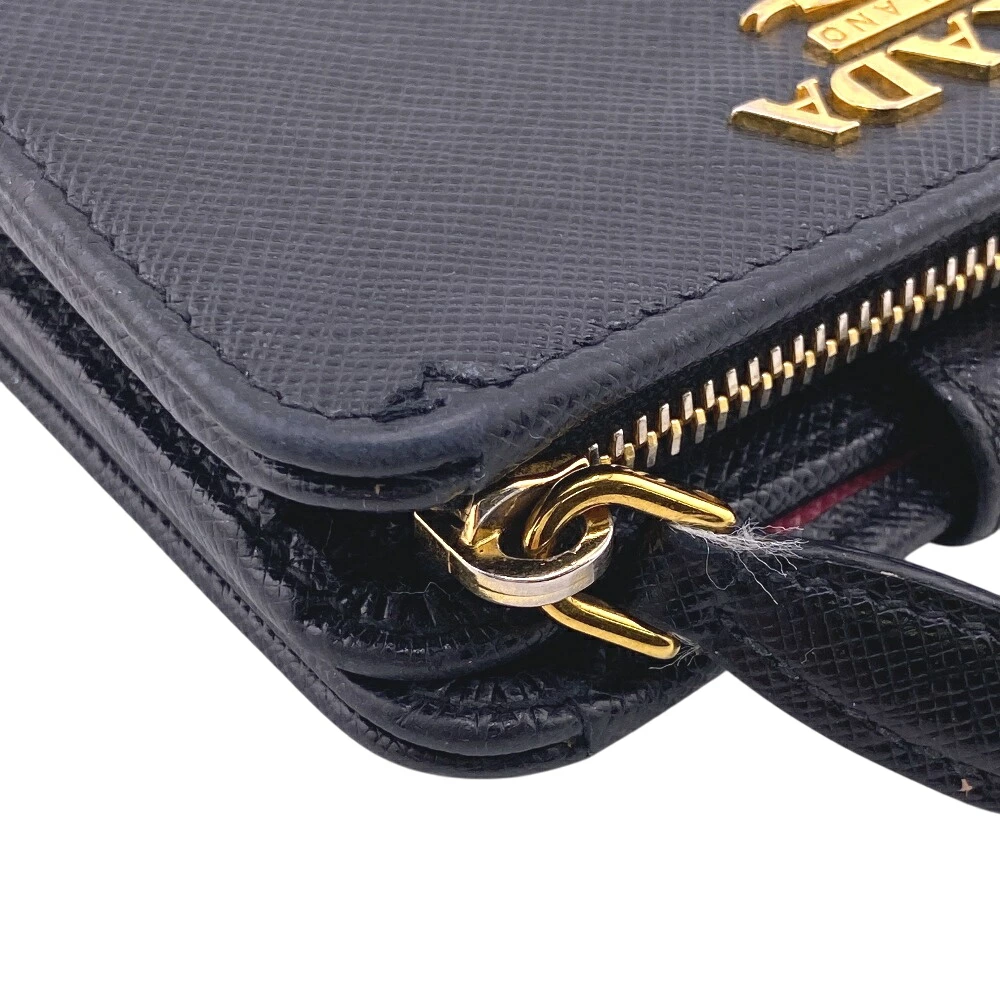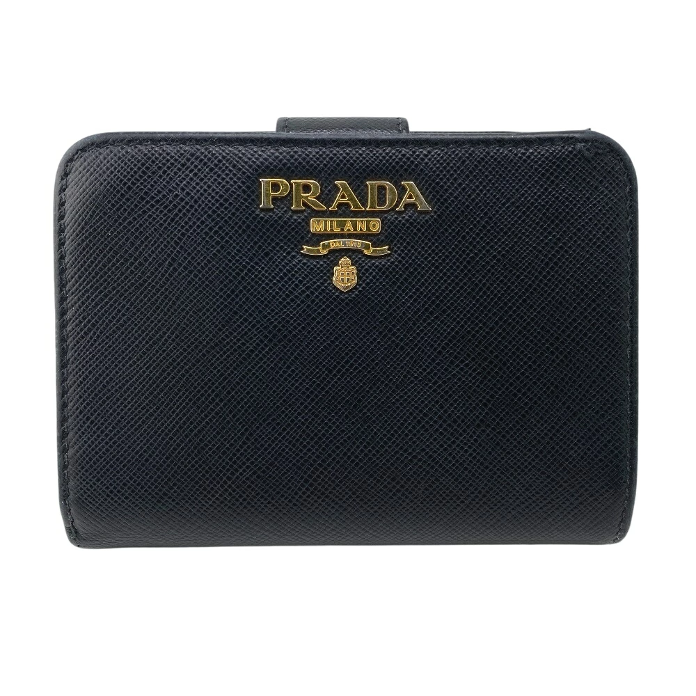 商品名 | PRADA/プラダ 1ML018 コンパクトウォレット サフィアーノ 二つ折り財布 ブラック レディース |