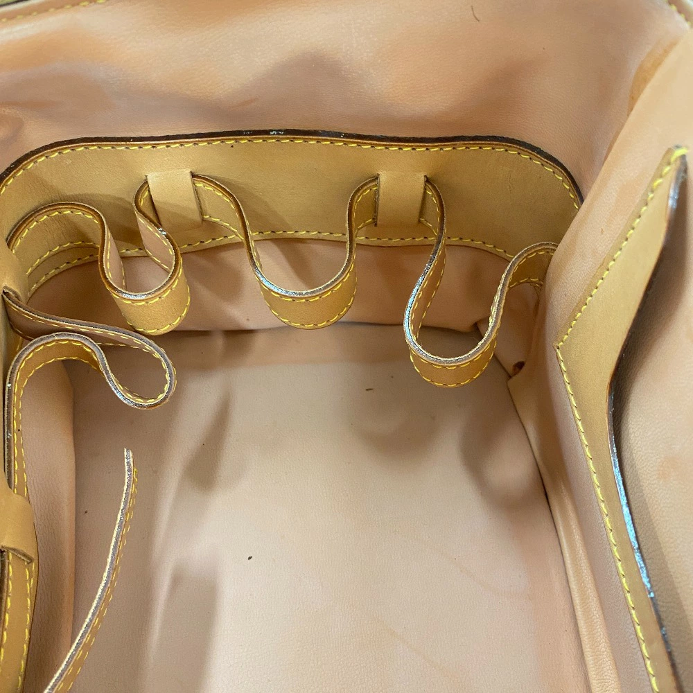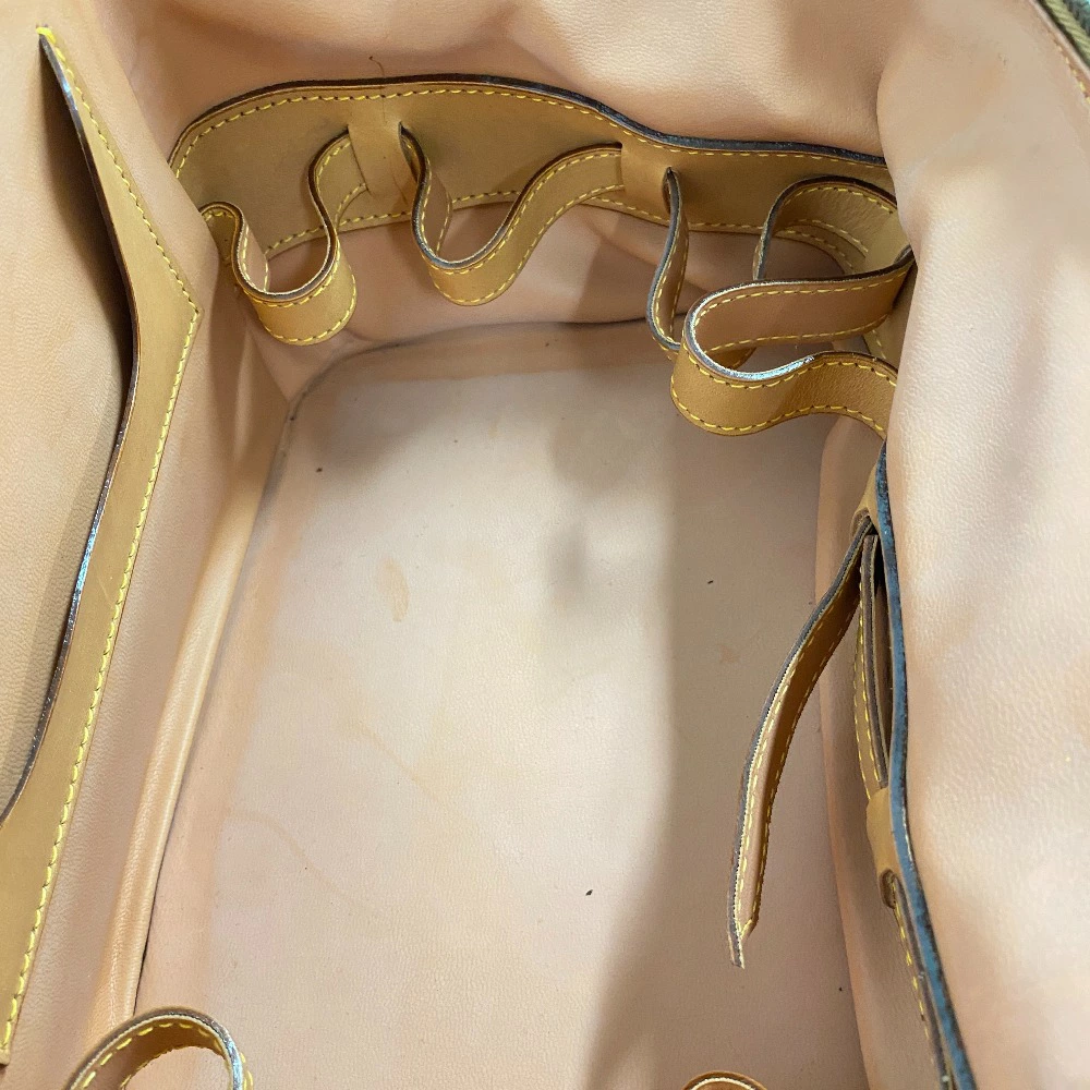 状態 | 【外・表面】小キズ、スレ、汚れ 【外・ハンドル-ストラップ】小キズ、スレ 【外・コーナー】スレ、キズ、汚れ、黒ずみ 【外・形状】型崩れ 【内側】スレ , キズ , 汚れ , 変色 【におい】古い匂い 【金具部分】スレ、キズ、くすみ |