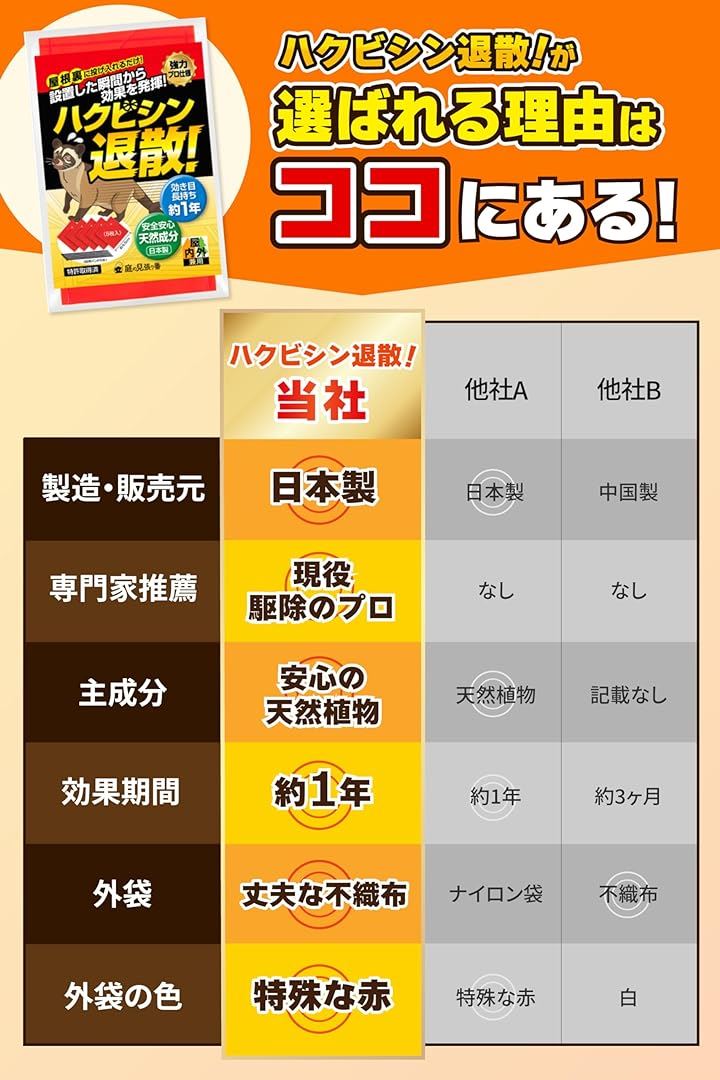 「害獣駆除のプロ推薦・シリーズ累計88,000個突破。」本能レベルで嫌う「カプサイシンのニオイ」でハクビシンを撤退。
