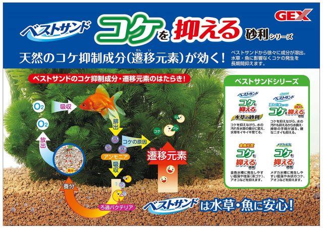 商品紹介コケの発生と水の汚れを砂の力で抑え、水換えの手間を減らす。コケの発生と水の汚れを砂の力で抑え、水換えの手間を減らす。原材料・成分ゼオライト使用方法水槽に直接加え、必要に応じて交換してください。
