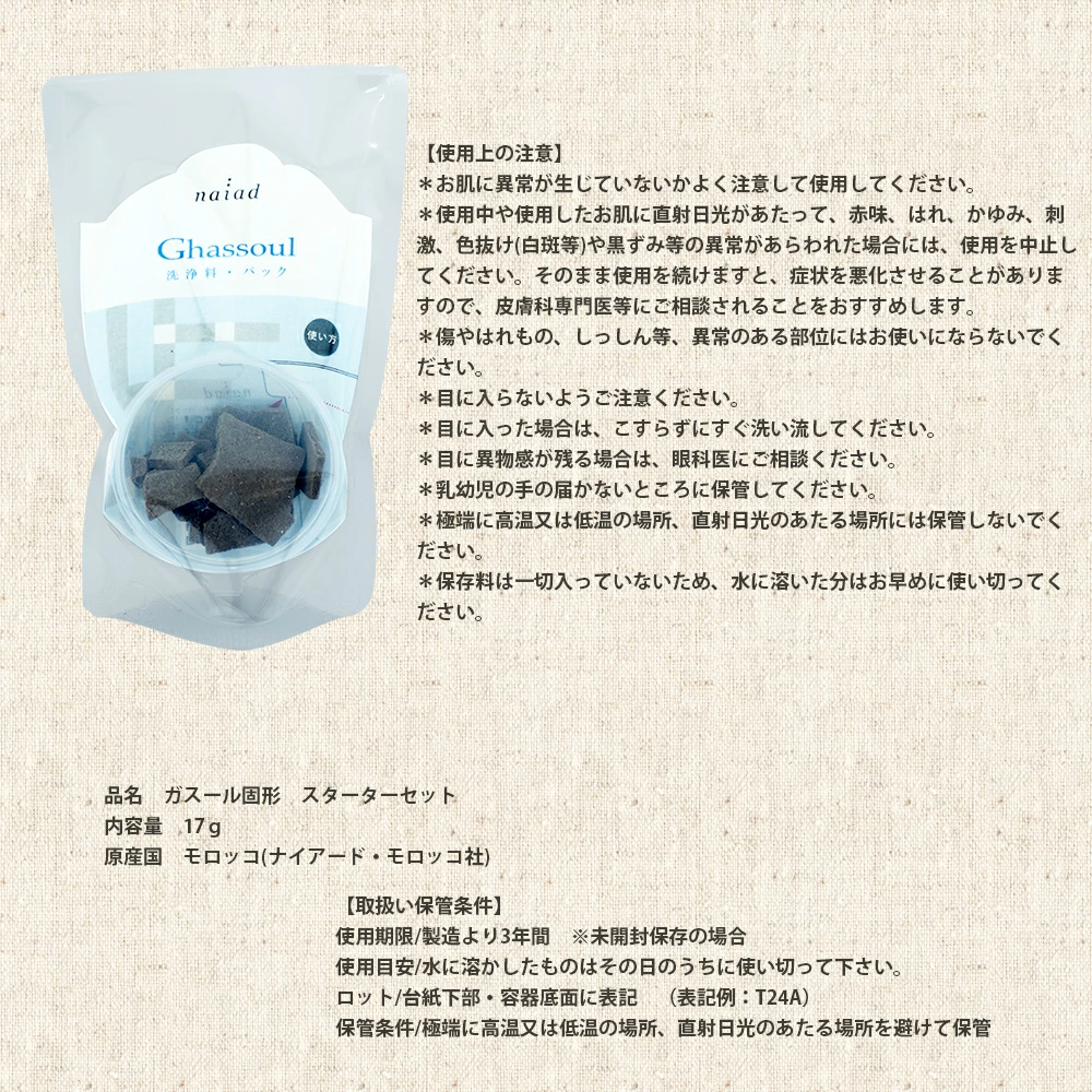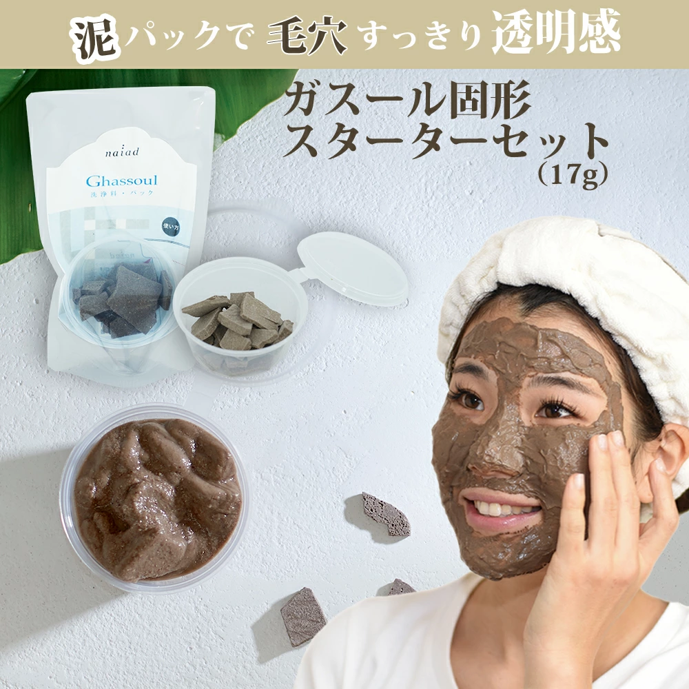 【商品情報】泡パックで毛穴すっきり透明感専用抗道から採掘した良質な原石を、自社工房で複数回フィルタリングした、純度の高いガスールです。クリーム状になったガスールは油分やたんぱく質などの汚れを吸着し、肌や髪を清浄にします。また、ミネラルが肌を潤わせ穏やかに整えます。