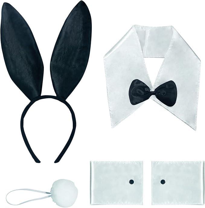 [GHDVOP] バニーガール うさぎ セクシー 衣装 服 女性用 レディース 誘惑 仮装 過激 コスチューム ハロウィン クリスマス 女装 人気 コスプレ (うさ耳 +しっぽ + カフス*2 + ネクタイ ) (ブラックうさぎ)